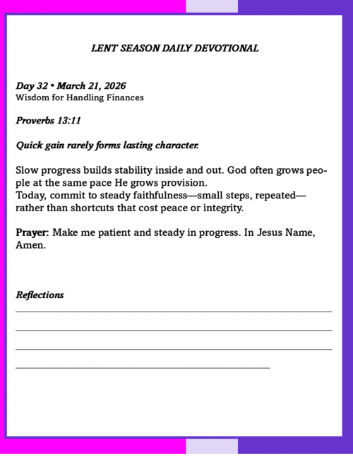 LENT SEASON - Join us for this year's Season of Lent Devotionals (February 18 - April 2) that you too may be encouraged and receive the wisdom through God's word daily. Faithful With Little, Faithful With Much! A 40-Day Devotional on Stewardship, Generosity, and Trust