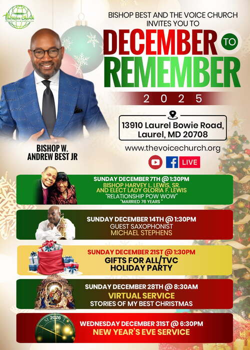 Bishop Best and The Voice Church joyfully invite you, your family, and friends to our December to Remember 2025 celebration!